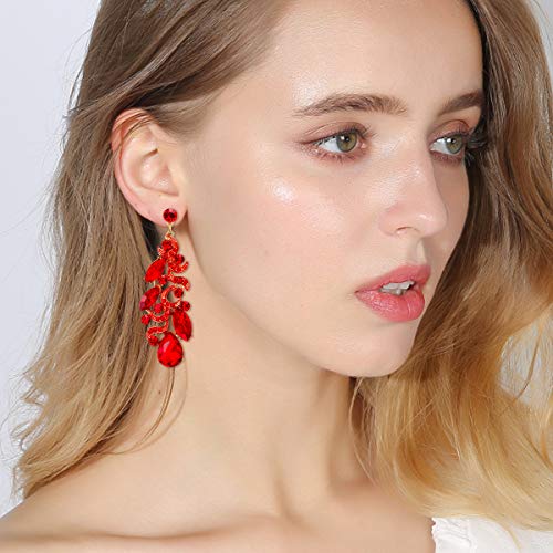 Orecchini donna,EVER FAITH Cristallo Festa Floreale Foglia Vite goccia nuziale Orecchini pendenti Rosso Argento-fondo