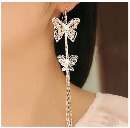 Orecchini da donna La farfalla Eleganti Orecchini lunghi con nappe per donne e ragazze 1 paia (argento)