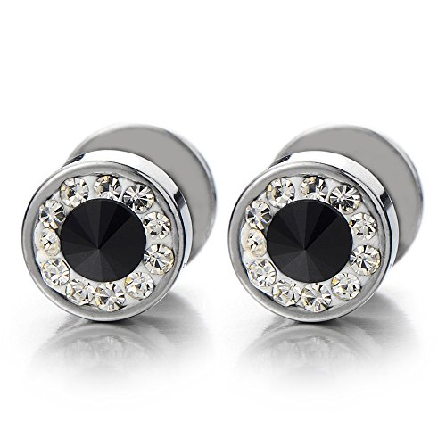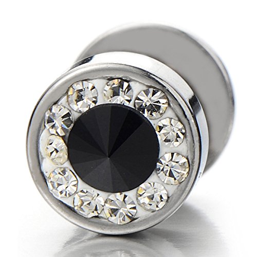 2 Orecchini da Uomo Donna. Finto Dilatatore Fake Plug. Acciaio Inossidabile con Zirconi(8MM)