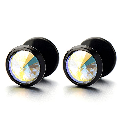 8mm Nero Orecchini da Uomo Donna, Finto Dilatatore Fake Plug, Acciaio Inossidabile con Zirconi, 2 pezzi