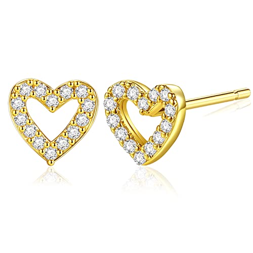 Orecchini da Donna a Forma di Cuore Oro - Orecchini a Bottone a Cuore Piegati con Pavé di Zirconi Placcati in Oro 14k per Donna