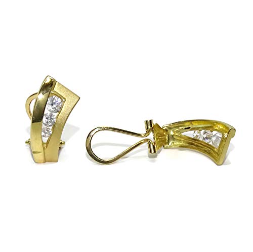 Orecchini da donna in oro giallo 18 k con 6 zirconi ideali sia da indossare tutti i giorni che da regalare. 2,80 g di oro 18 carati.