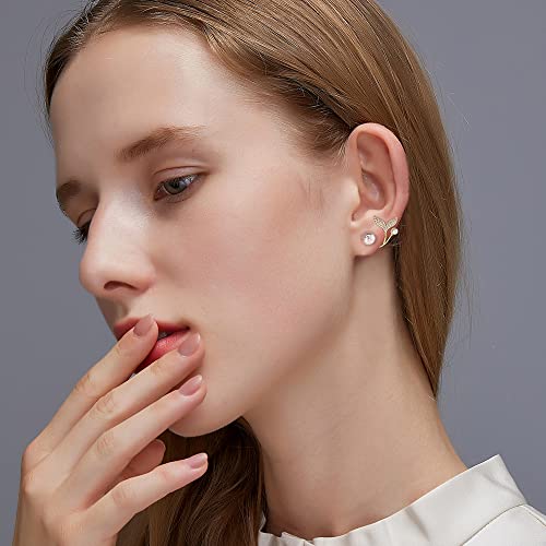 Orecchini da Donna, Orecchino del Polsino dell'orecchio Della Farfalla Della Coda Della Sirena Della Perla per le Ragazze Adolescenti