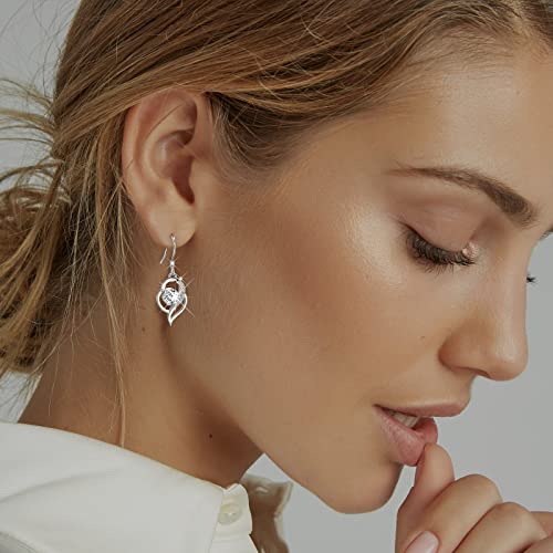 Orecchini Donna Pendenti Argento 925 - Orecchino Goccia Cuore con Ciondolo Anallergico con Zirconi 5A per Madre Fidanzata Moglie per l'anniversario di Natale San Valentino (Argento)