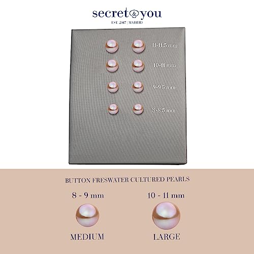 PERLE COLTIVATE D'ACQUA DOLCE DI QUALITÀ: Orecchini da donna e bambina con perle Secret e You tipo bottone. Le perle a bottone sono rotonde davanti, ma la parte posteriore è appiattita, questo è appena percettibile quando indossi gli orecchini, ma sono più economici di quelli rotondi. Il colore di queste perle non è stato trattato, il che implica che il loro colore rosa-lavanda è naturale.