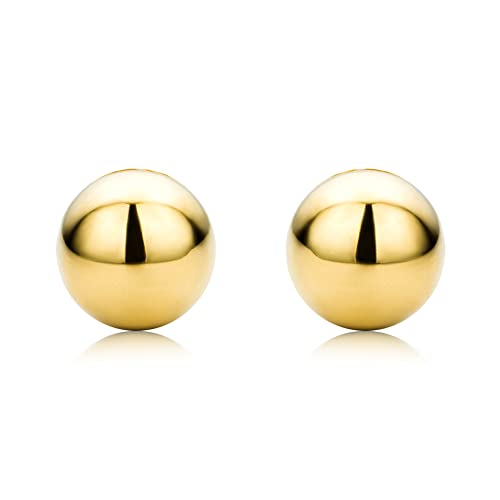 Orecchini Donna Piccoli a lobo Sfera Miore in Oro Giallo, Vero Oro 18KT 750 Bottone Donna diametro 5 mm, Boccole anallergiche con perno Passante e chiusura a farfalla a pressione.