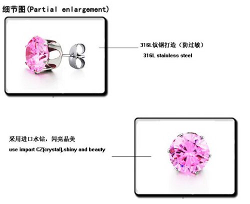 Opk, orecchini da donna con strass portafortuna, in titanio (5mm/ 7mm /10mm) e acciaio inossidabile, colore: Pink, cod. GE218F-merchant