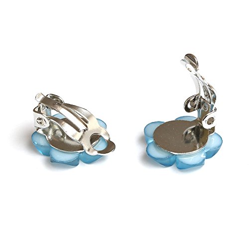 Idin Orecchini a clip - Fiore blu con strass (ca. 16 x 16 mm)