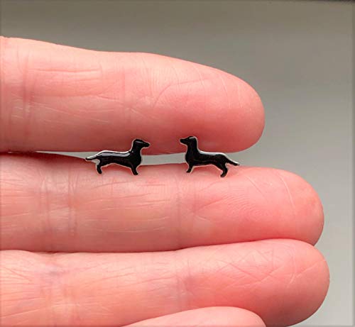 Orecchini a forma di bassotto con cucciolo di cane, in argento Sterling 925, Argento, Senza_pietra