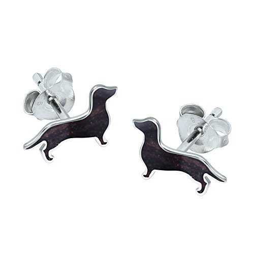 Orecchini a forma di bassotto marrone, in argento Sterling