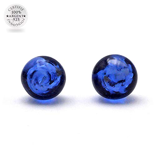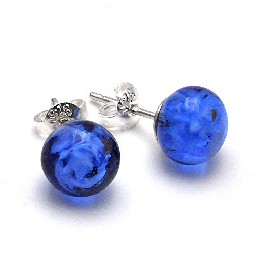 Orecchini a forma di chiodo blu navy, in vetro di Murano
