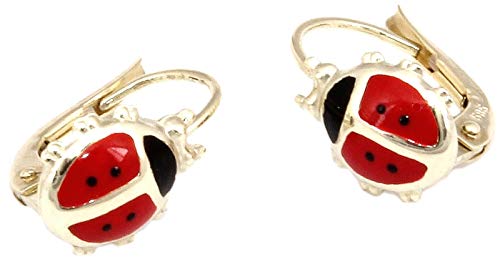 Orecchini per bambini a forma di coccinella in vero oro giallo 333. Design molto dettagliato.