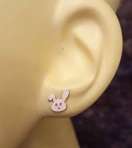 Orecchini a vite a forma di coniglietto rosa, in vero argento Sterling