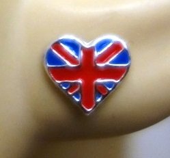 Orecchini a Forma di Cuore con Bandiera del Regno Unito, Argento Sterling