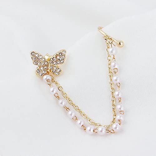 Orecchini a lobo a forma di farfalla Carufin Orecchini a clip con catena di perle dorate Orecchini di cristallo alla moda per le donne a (confezione da 2)