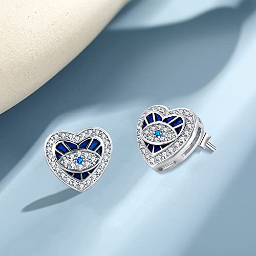 GOXO Orecchini a forma di occhio diabolico Orecchini a bottone rotondi blu in argento sterling 925 per donna (cuore-malocchio)