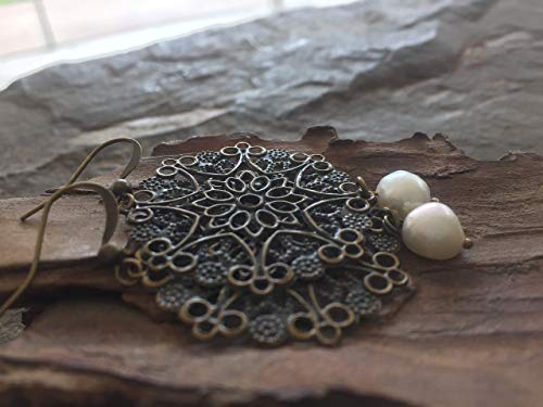 Orecchini freshwaterperle & ornamento in bronzo