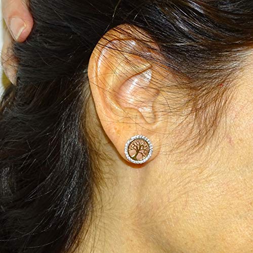 Orecchini in oro giallo e oro bianco da 18 carati, modello "Albero della vita", con zirconi, 1,2 cm di diametro