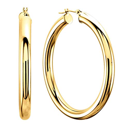 Orecchini in oro giallo 585 da 14 carati ad alta lucentezza, larghezza di 4 mm, dimensioni a scelta