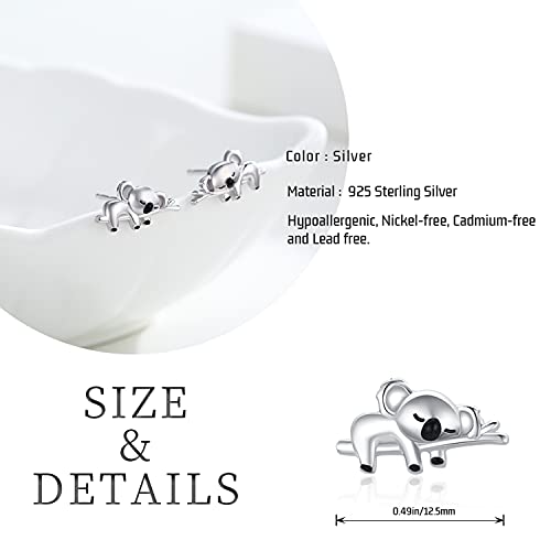 Orecchini in argento Koala Dimensioni: la dimensione degli orecchini in argento è 12,5 mm / 0,49 pollici * 7 mm / 0,27 pollici. Il design delicato e minuscolo è adatto a tutte le adorabili ragazze adolescenti.