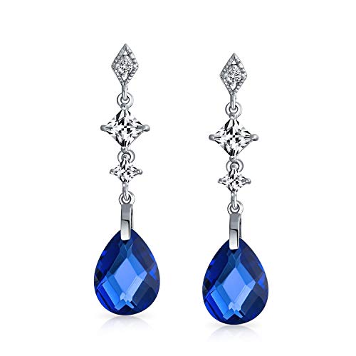 DESIGN MOZZAFIATO - Stordisci qualsiasi stanza entri in questi orecchini in argento sterling, lacrima, lampadario da sposa. Accentuata da un seducente pietra cz in zaffiro simulato a forma di pera con cz quadrati, in stile vintage. Opzione squisita per il compleanno di settembre.