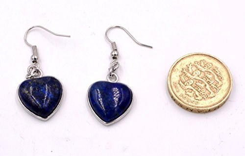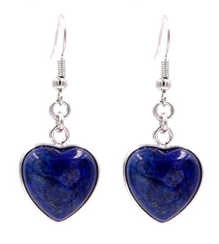 Orecchini con lapislazzuli semi preziosi a forma di cuore con gancio ad amo, blu scuro (in bustina d'organza)
