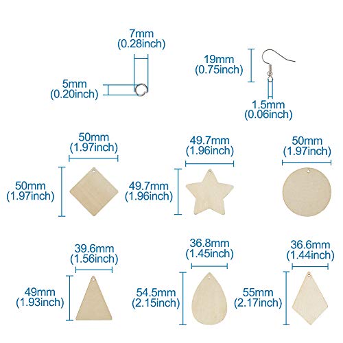 Contenuto della confezione: 60 ciondoli in legno con 6 stili. Viene fornito con 60 ganci per orecchini e 60 anelli di salto per rendere i tuoi progetti più facilmente.