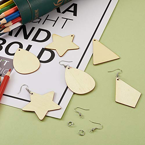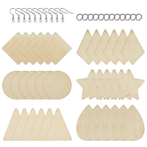 60 orecchini in legno grezzo con 6 stili geometrici in legno vuoto con anelli di salto e ganci per orecchini per creazione di gioielli, artigianato