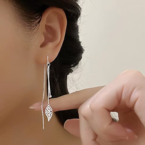 Orecchini lunghi da donna in argento 925,orecchini lunghi da festa,orecchini da donna lunghi orecchio,orecchini di piume d'argento 8.2cm,Regali gioielleria per donne,orecchino pendente ipoallergenico