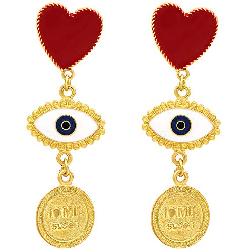 Suyi Orecchini Di Malocchio Monili Di Goccia Di Moneta Del Cuore Studs Vintage Punk Per Le Donne Malocchio Evil Eye
