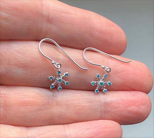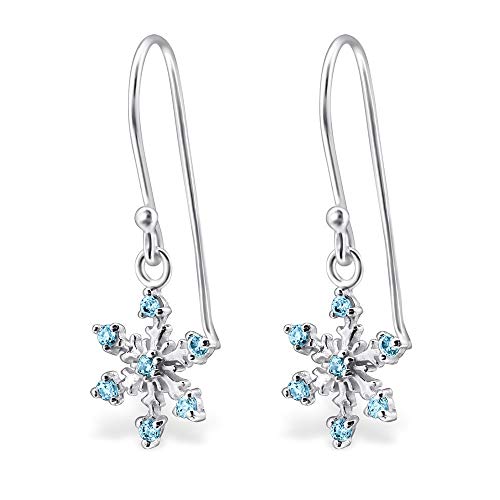 Orecchini a pendente in argento Sterling con ciondolo a forma di fiocco di neve con zirconi blu