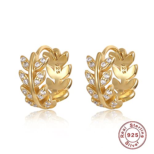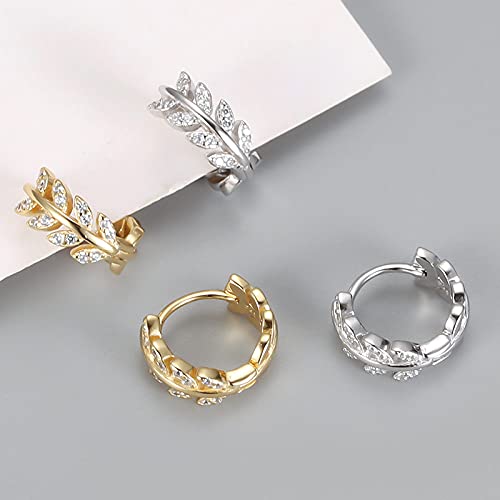 Orecchini Pendenti In Argento Sterling Per Donna, Orecchini A Cerchio In Argento 925 Cubic Zirconia, Mini Orecchini A Cerchio Da Donna In Argento Massiccio Con Foglie Avvolgenti Placcati In Oro Orec