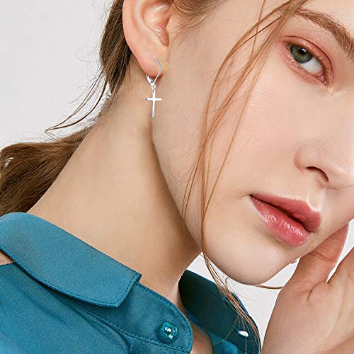 YL Orecchini pendenti a croce in argento 925 per ragazze da donna
