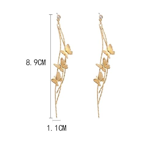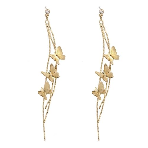 Orecchini pendenti europei con tre farfalle esagerate per gioielli con orecchini lunghi con nappa color oro con temperamento femminileNützlich und praktisch