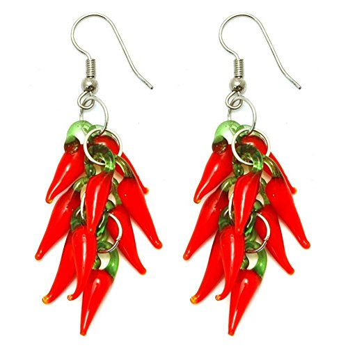 Questi orecchini con un grappolo di peperoncini hanno un aspetto così bello che viene voglia di mangiarli. Ma non lasciatevi ingannare: sono degli orecchini. Chi indovinerebbe che sono realizzati in vetro? Scegli questi orecchini pendenti così alla moda.