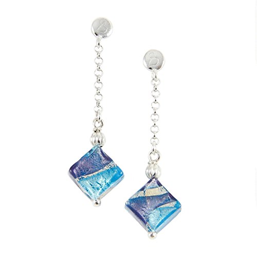 Orecchini pendenti con perle di vetro di Murano e catena rolò in argento 925 rodiata