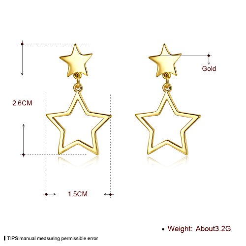 Orecchini pendenti con stella in oro 14 carati per donne, adolescenti e ragazze, per orecchie sensibili.