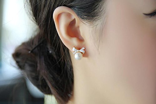 Orecchini con clip e perla finta a forma di fiocco bianco