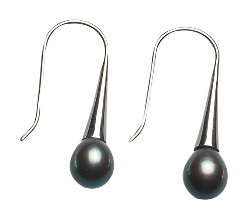 JOJO Orecchini con perle d'acqua dolce bianche, in argento Sterling 925, 7-7,5 mm, buona lucentezza, orecchini a goccia lineari, come con perle d'acqua dolce coltivate, leggera variazione di colore e Argento, colore: Pavone nero, cod. AGE-003 Black