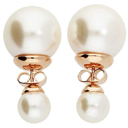 I nostri orecchini da donna bianchi, con doppio perno e perla davanti/dietro, sono in acciaio inox placcato in oro rosa 18 ct/750.
