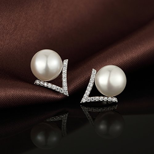 Orecchini di perle orecchini di perle per le donne orecchini di perle d'argento 925 orecchini di perle di grandi dimensioni in argento sterling per le donne orecchini di perle di diamanti cz 10mm