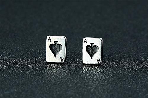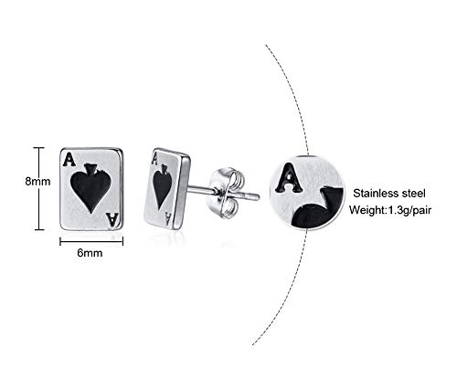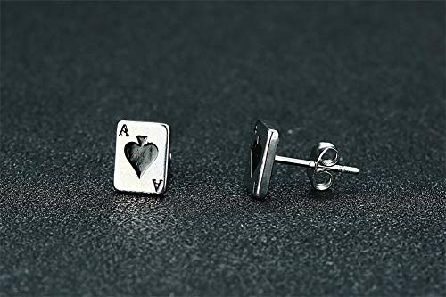 VNOX - Orecchini a perno in acciaio INOX con incisione "Asso di picche", per uomini e donne