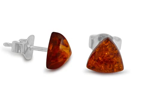 Orecchini con perno in ambra, naturale, trillion, 6x6 mm, argento 925