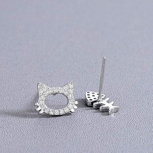 Orecchini a perno in argento asimmetrico a forma di gatto con osso di pesce carino piccoli orecchini per le donne in zirconia trasparente regalo per bambini