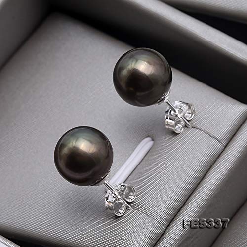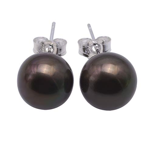Orecchini a perno in argento 925 con perle d'acqua dolce, 10 mm, colore: nero