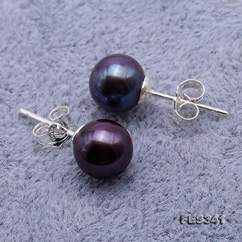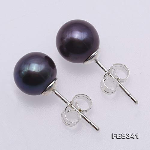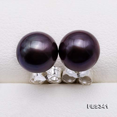 JYX - Orecchini a perno in argento con perle d'acqua dolce (8-10 mm) e Argento, colore: Nero, cod. FES341