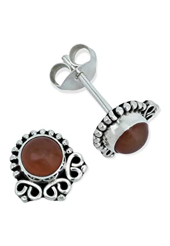 Orecchini a perno argento 925 con pietre preziose corniola pietra Rosso aranciato Orecchini in argento sterling da donna in vero argento (MOS-088-16)