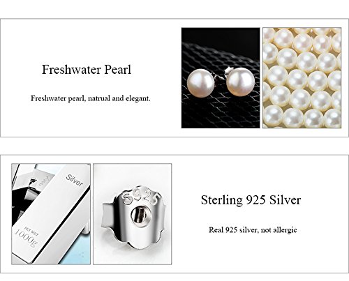 Orecchini a perno in argento Sterling 925 con perle d'acqua dolce squisite da 6 a 8 mm e Argento, colore: bianco, cod. TZE014
