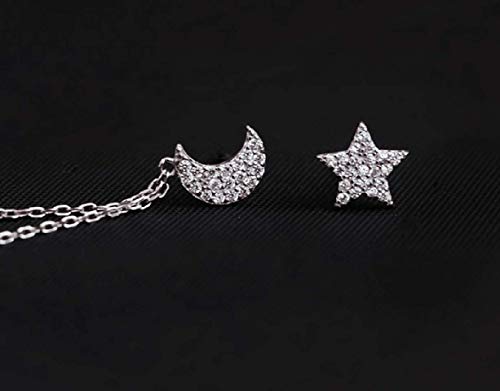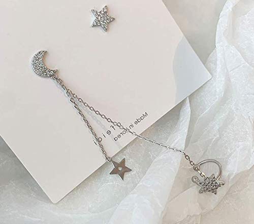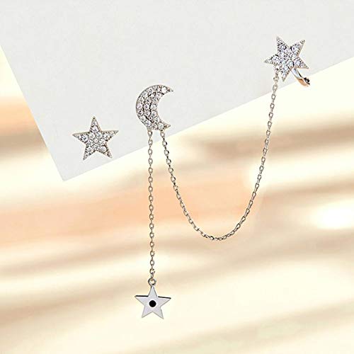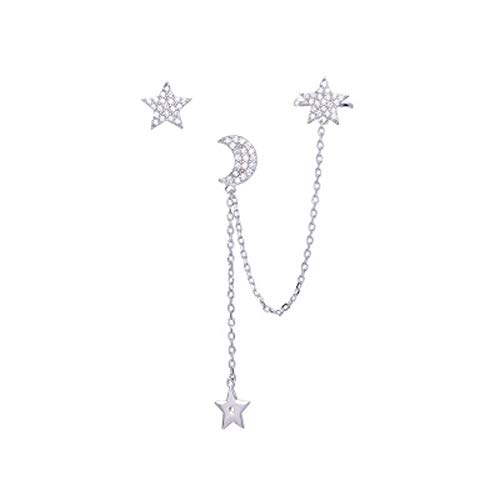 Orecchini a perno asimmetrici a forma di stella e luna, in argento Sterling S925, per donne e ragazze, con delicati zirconi cubici, per scalatori, cingolati, pendenti, con nappa, orecchini a goccia