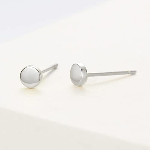 Orecchini a Perno in Oro Bianco 585 14 ct, Delicati 4 mm, con Solitario a Pois Rotondi, Gioielli per Donne e Ragazze - Diametro: 5 mm